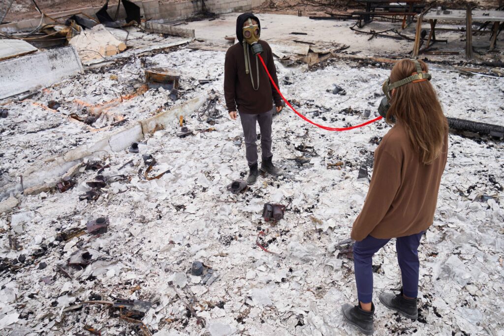 The gas masks represented metaphorical masks people are wearing to hide behind every single day; the rules,