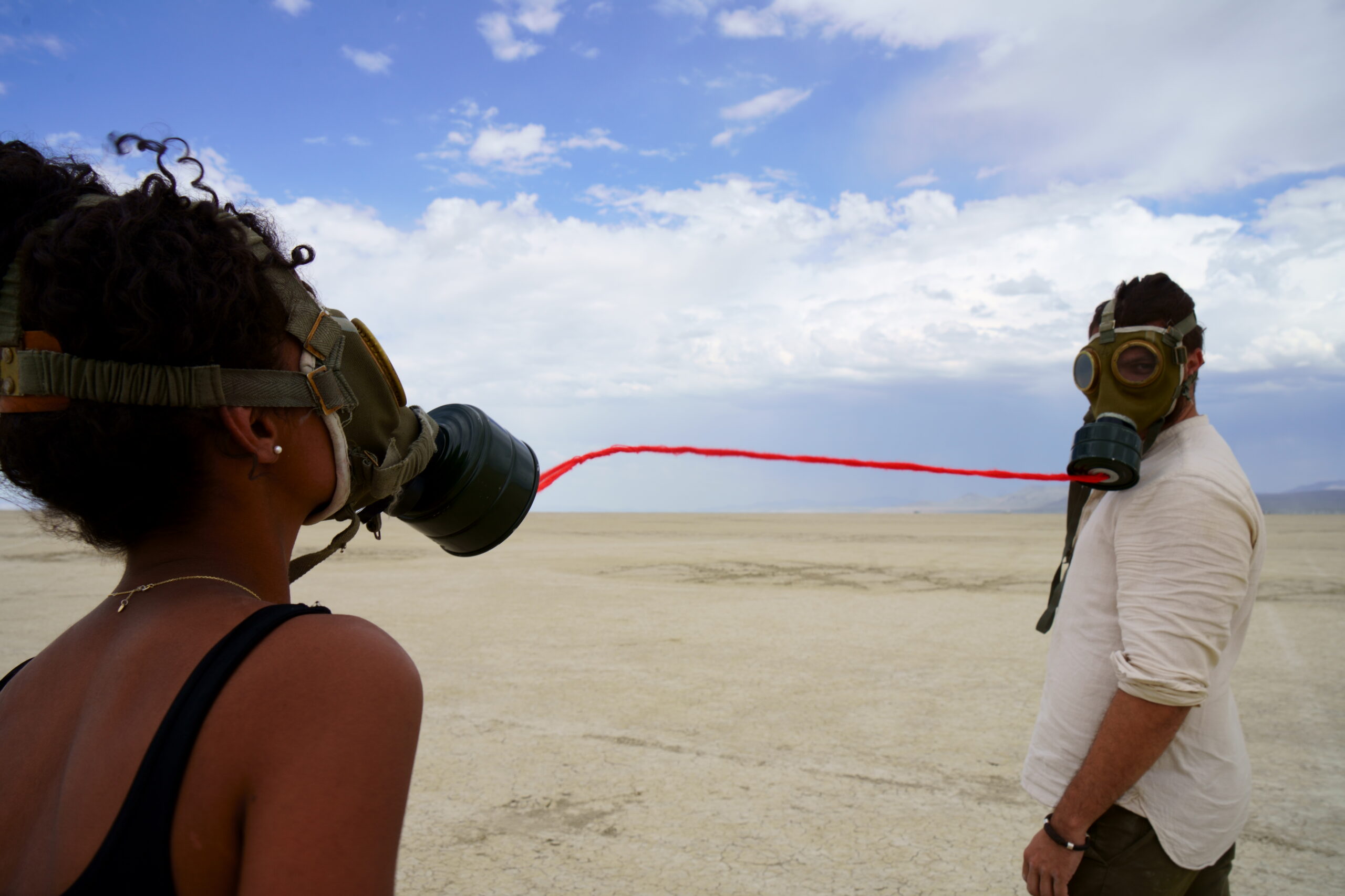 The gas masks represented metaphorical masks people are wearing to hide behind every single day; the rules,